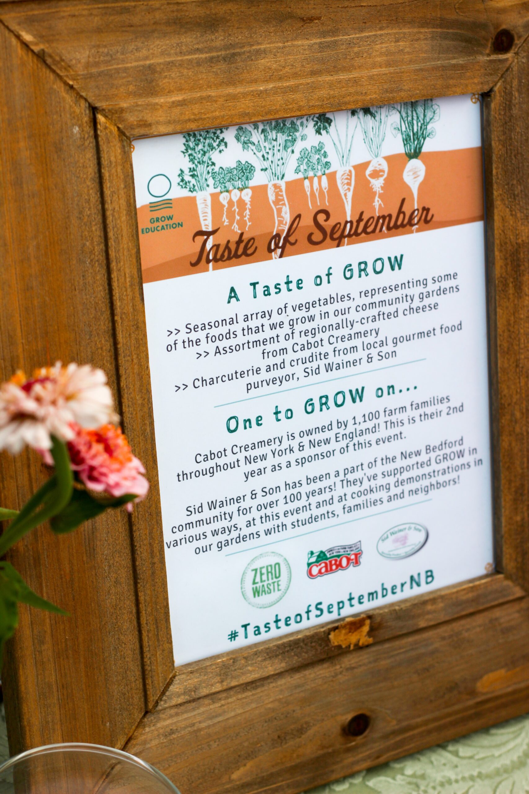 New Bedford, MA – “Laying Our Roots” was the theme on a gorgeous Wednesday evening when an enthusiastic crowd of SouthCoast residents gathered to support the Marion Institute’s GROW Education Program at the Fort Taber Community Center in New Bedford, MA. The annual “Taste of September” fundraiser brought together a variety of local restaurants and vendors in a tasting to celebrate the culinary traditions of the communities in which GROW’s gardens are located, primarily American, Cape Verdean, Portuguese, and Latin American.