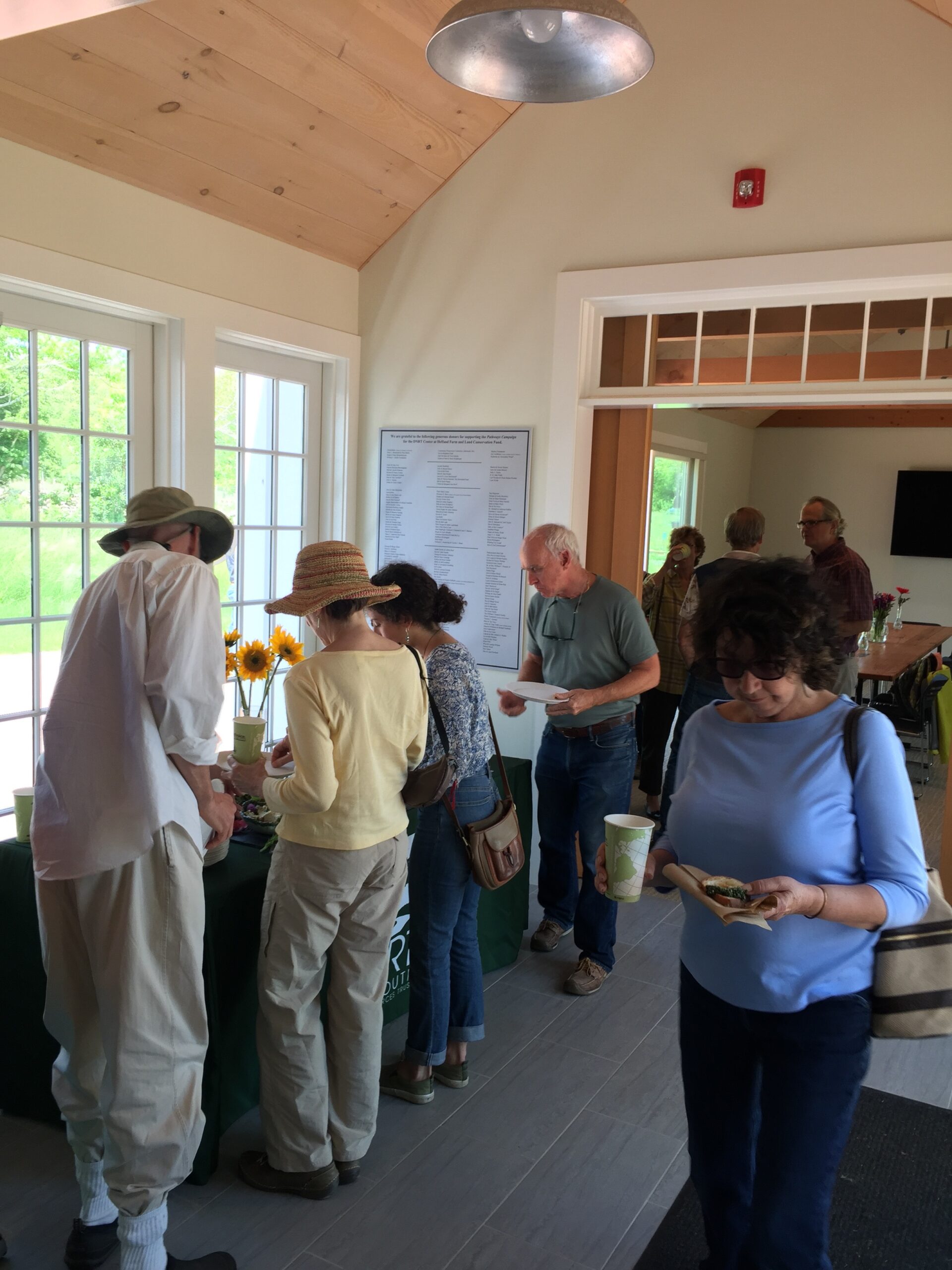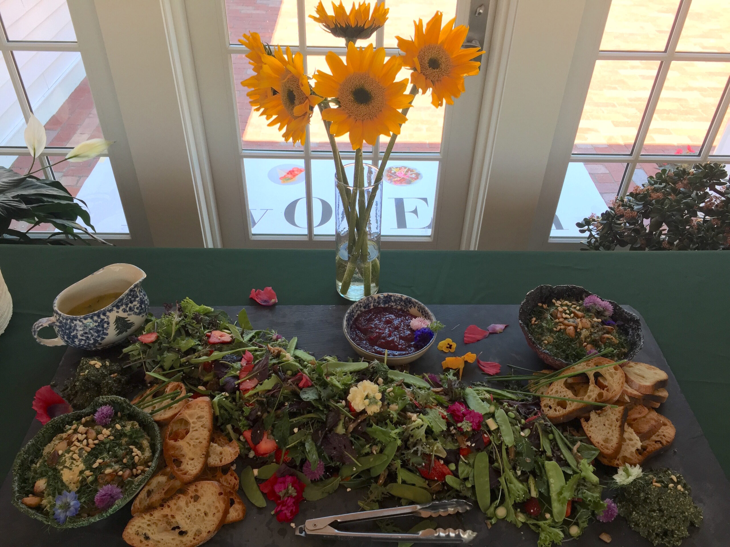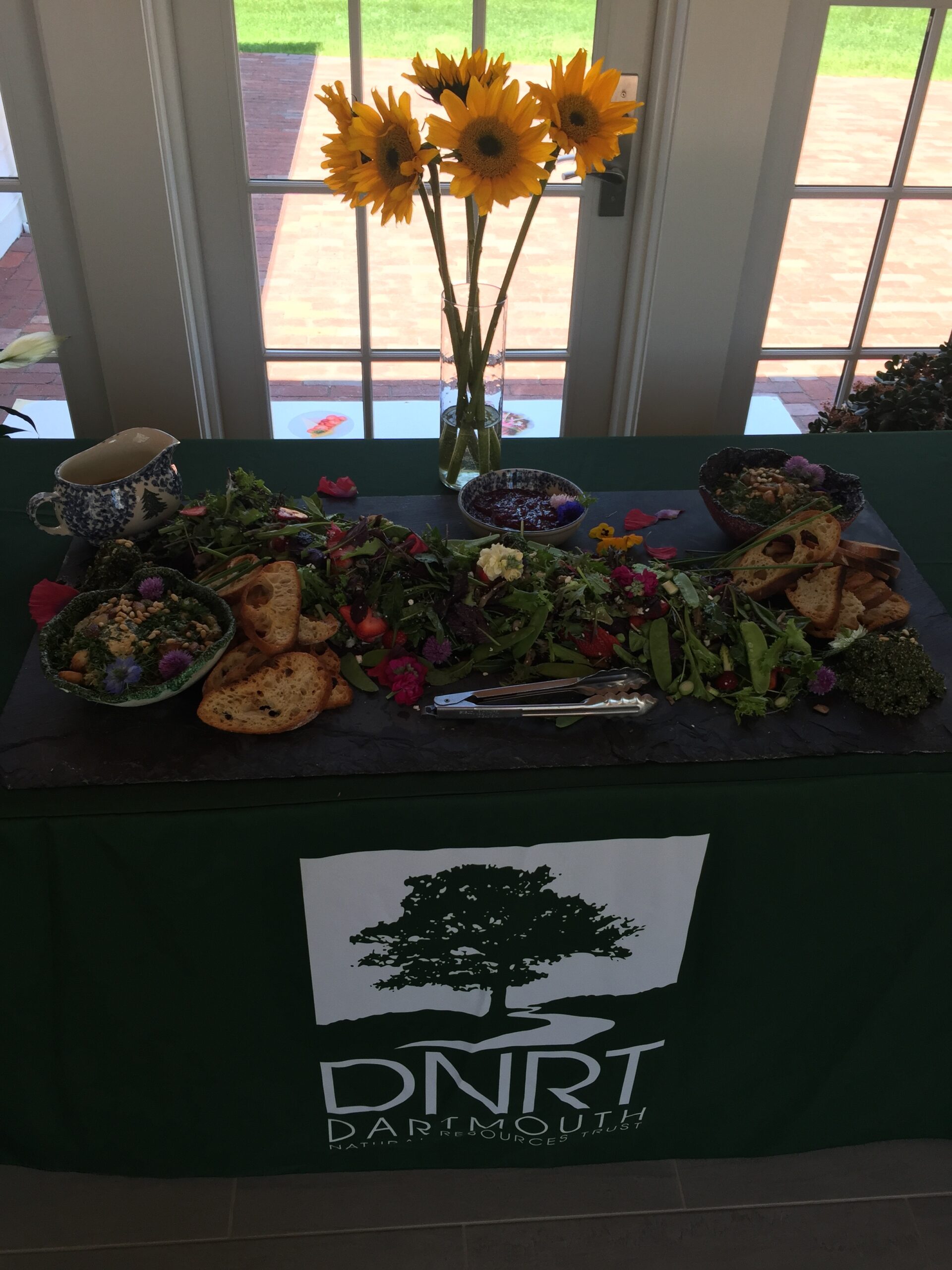 The group then traveled down the road to the rustic modern DNRT Center at Helfand Farm for an informal “trail to table” luncheon prepared and presented by Chef Edward Roszak of How on Earth in Mattapoisett. The locally sourced 3-course meal featured the herssert was herb-infused, with Dandelion Gluten Free Muffins as th a How on Earth tote bag filled with a host of items, including a reusable water bottle, a robust bundle of fresh, herbs, a card with the Dandelion Muffin recipe, and a signed copy of Brendan’s book.