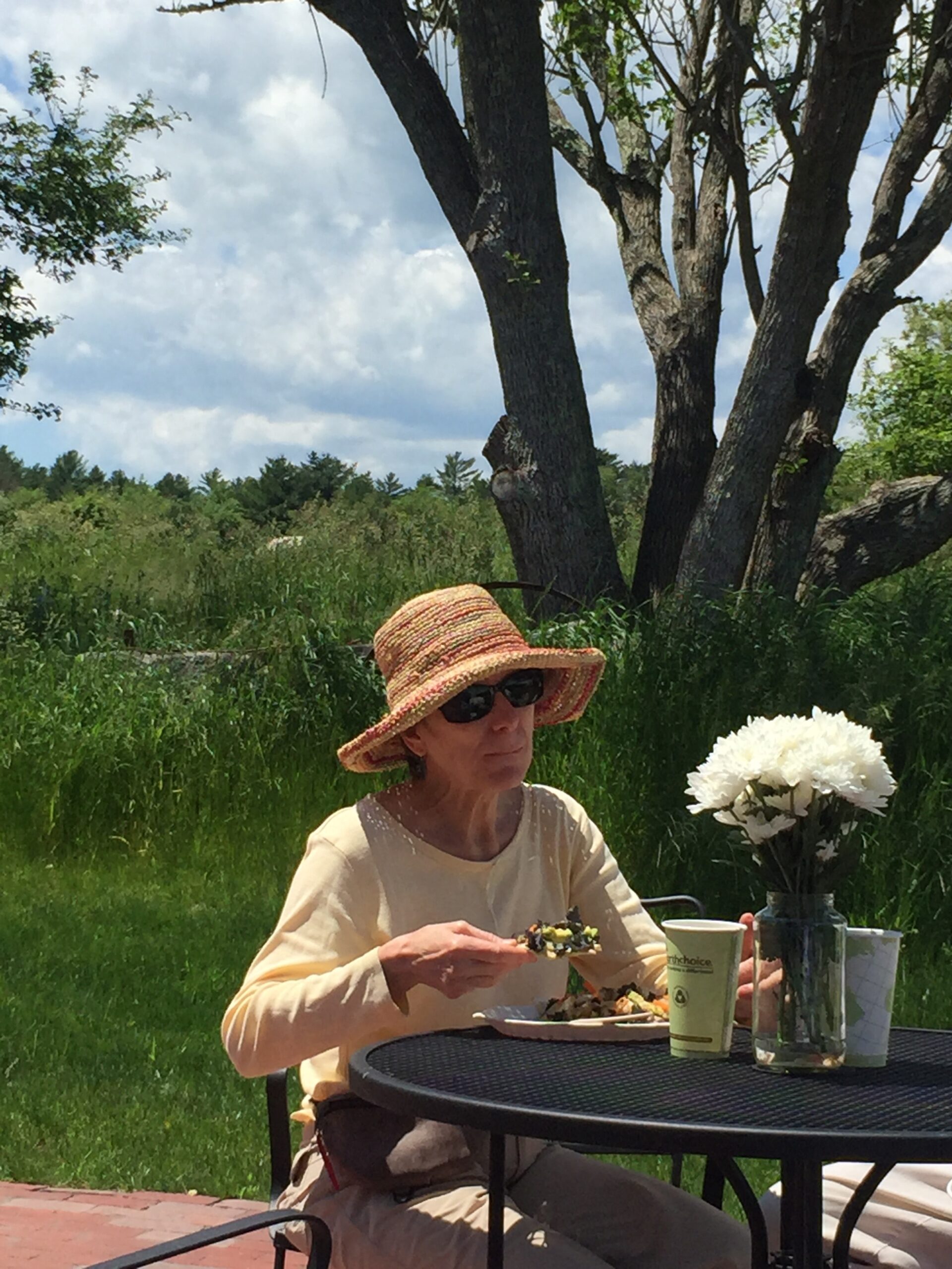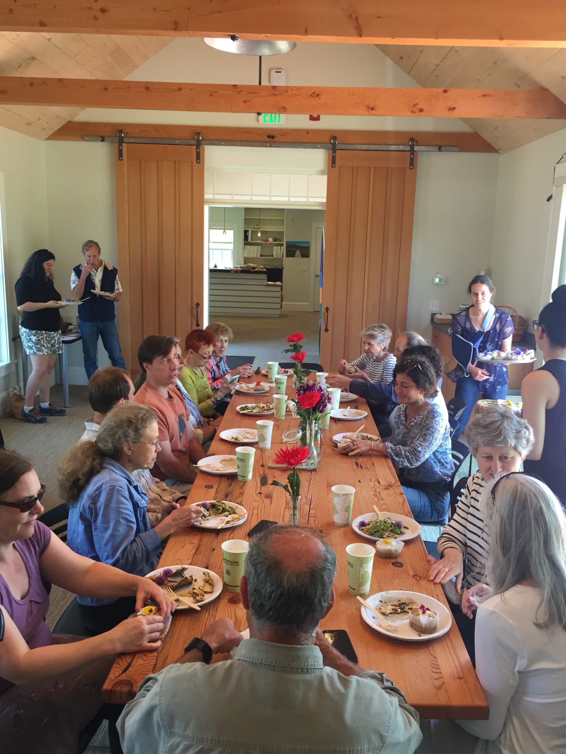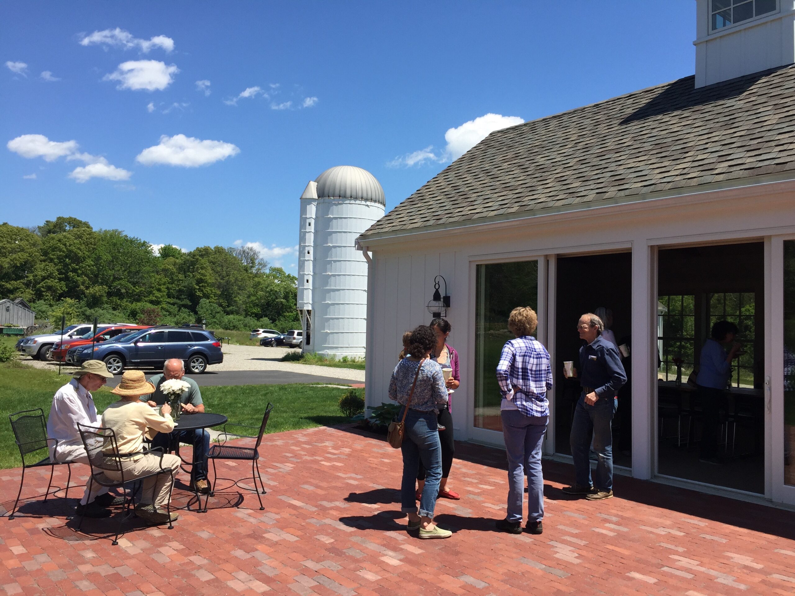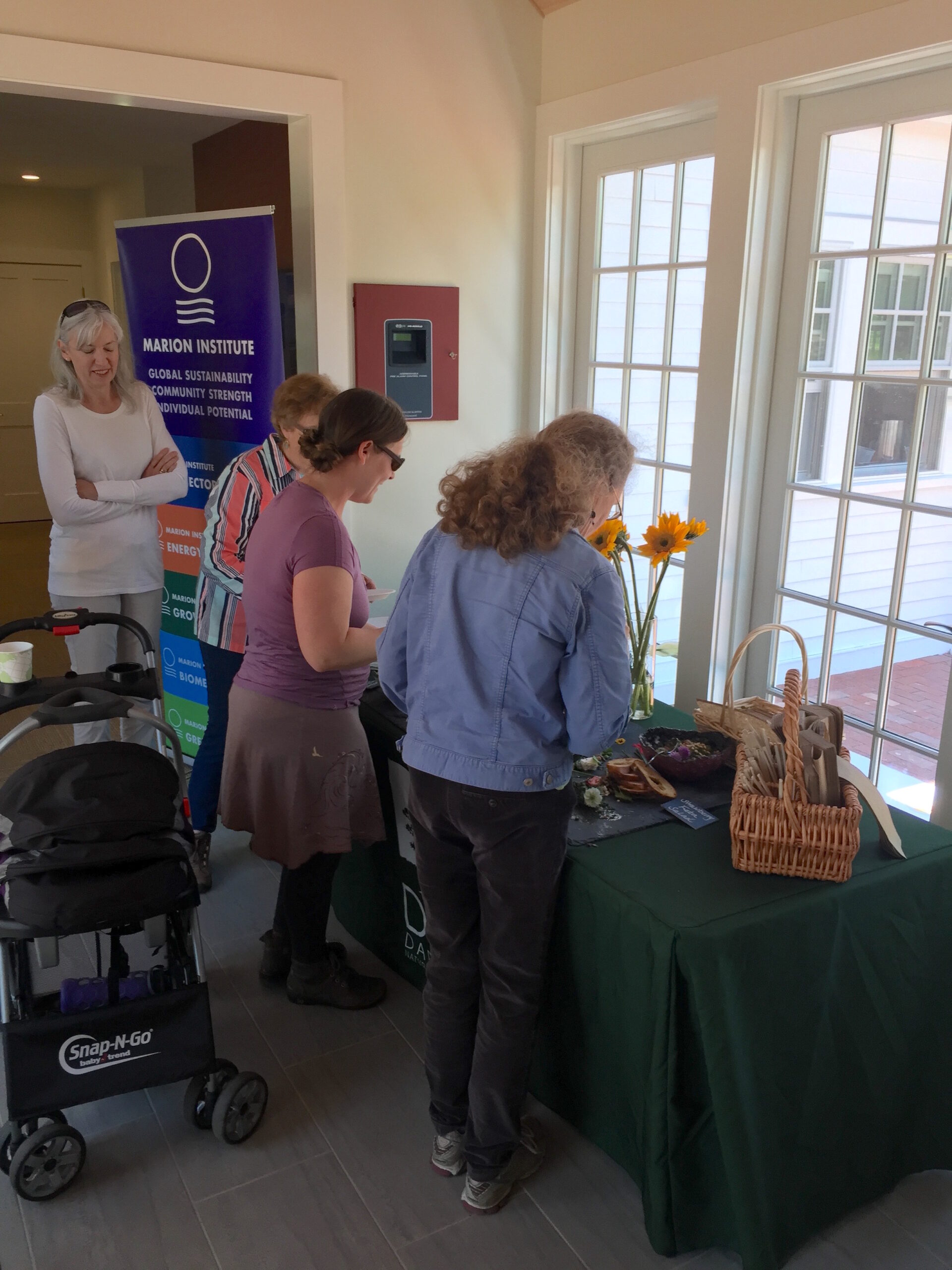 The group then traveled down the road to the rustic modern DNRT Center at Helfand Farm for an informal “trail to table” luncheon prepared and presented by Chef Edward Roszak of How on Earth in Mattapoisett. The locally sourced 3-course meal featured the herssert was herb-infused, with Dandelion Gluten Free Muffins as th a How on Earth tote bag filled with a host of items, including a reusable water bottle, a robust bundle of fresh, herbs, a card with the Dandelion Muffin recipe, and a signed copy of Brendan’s book.