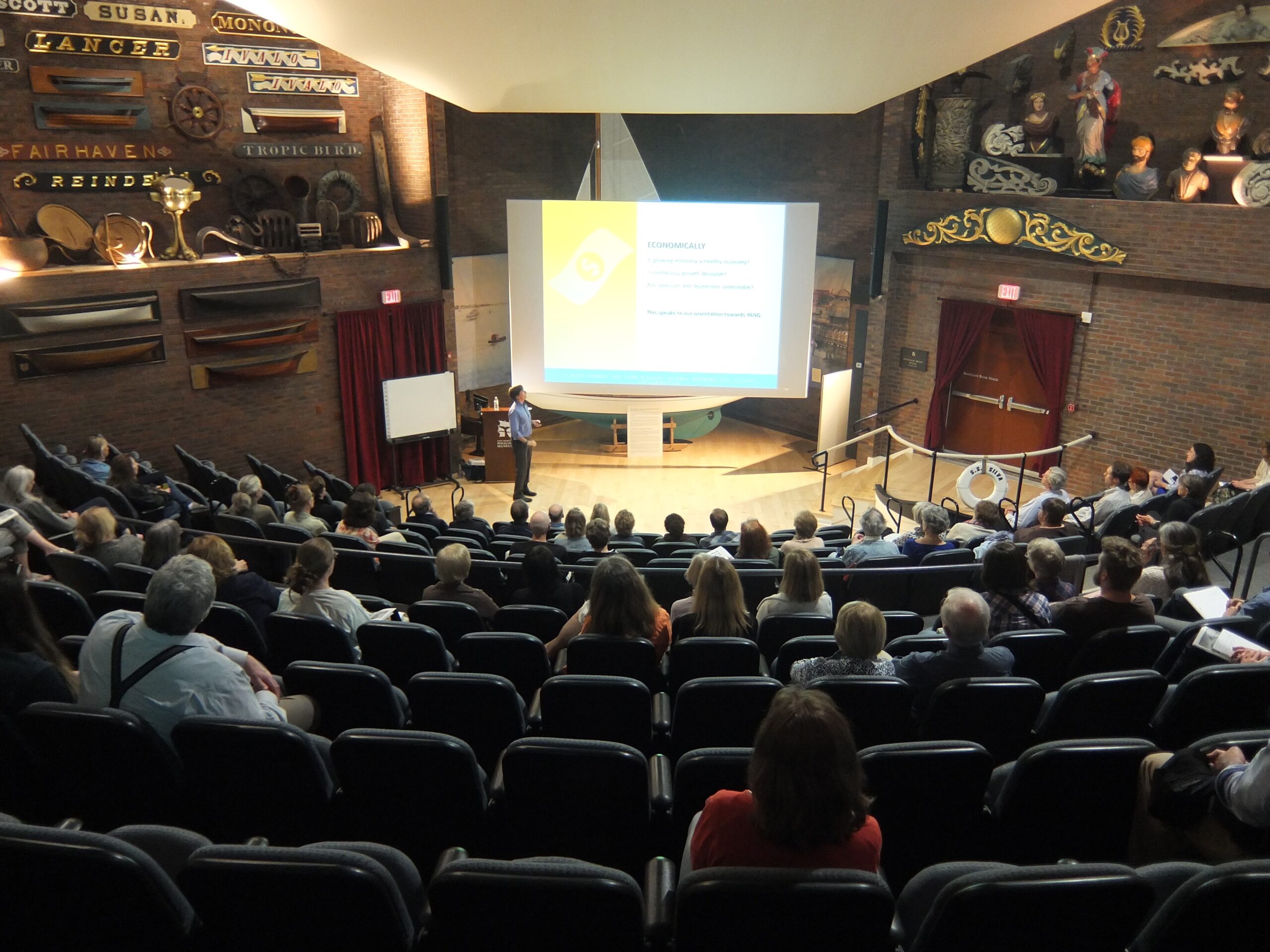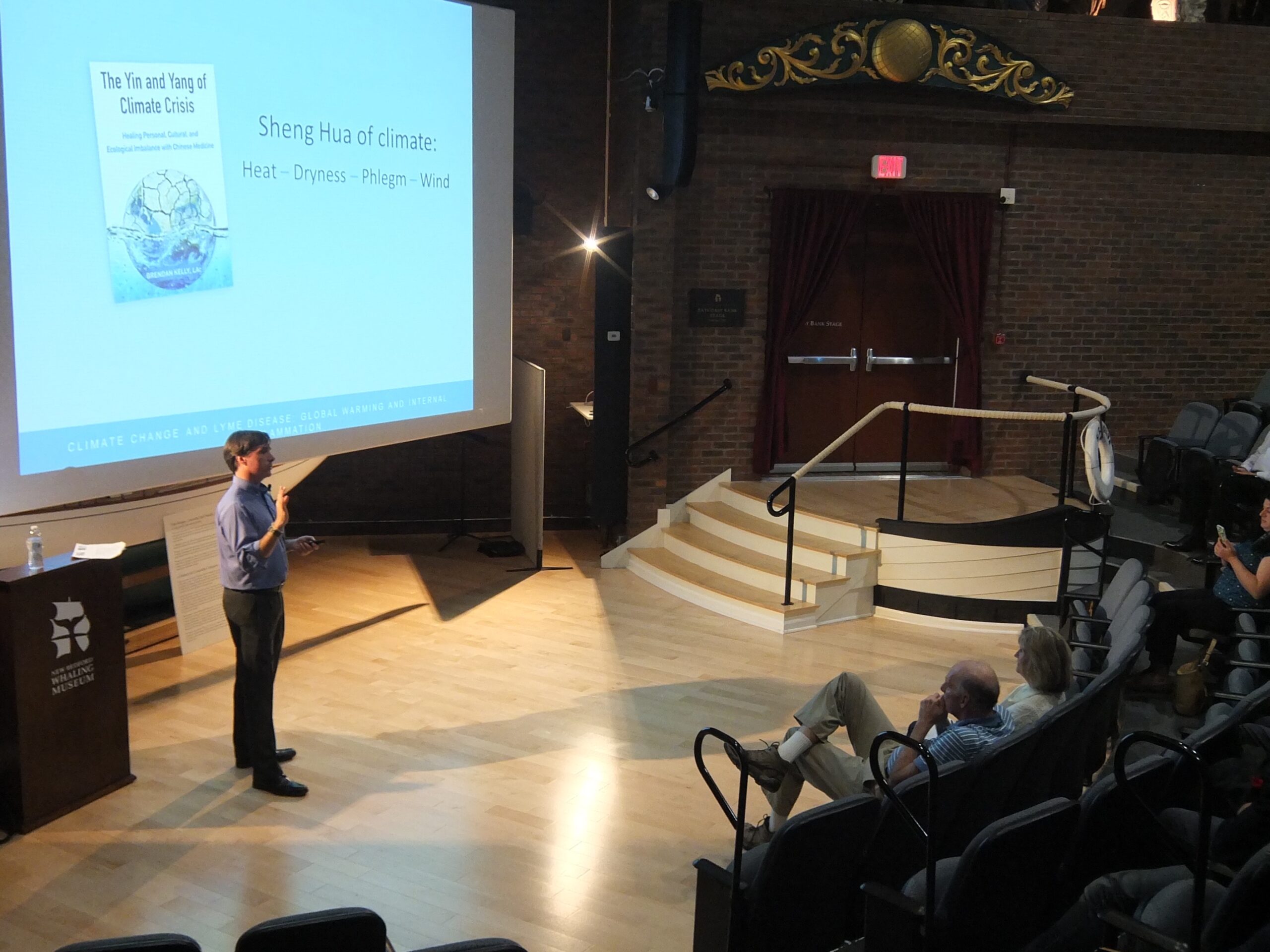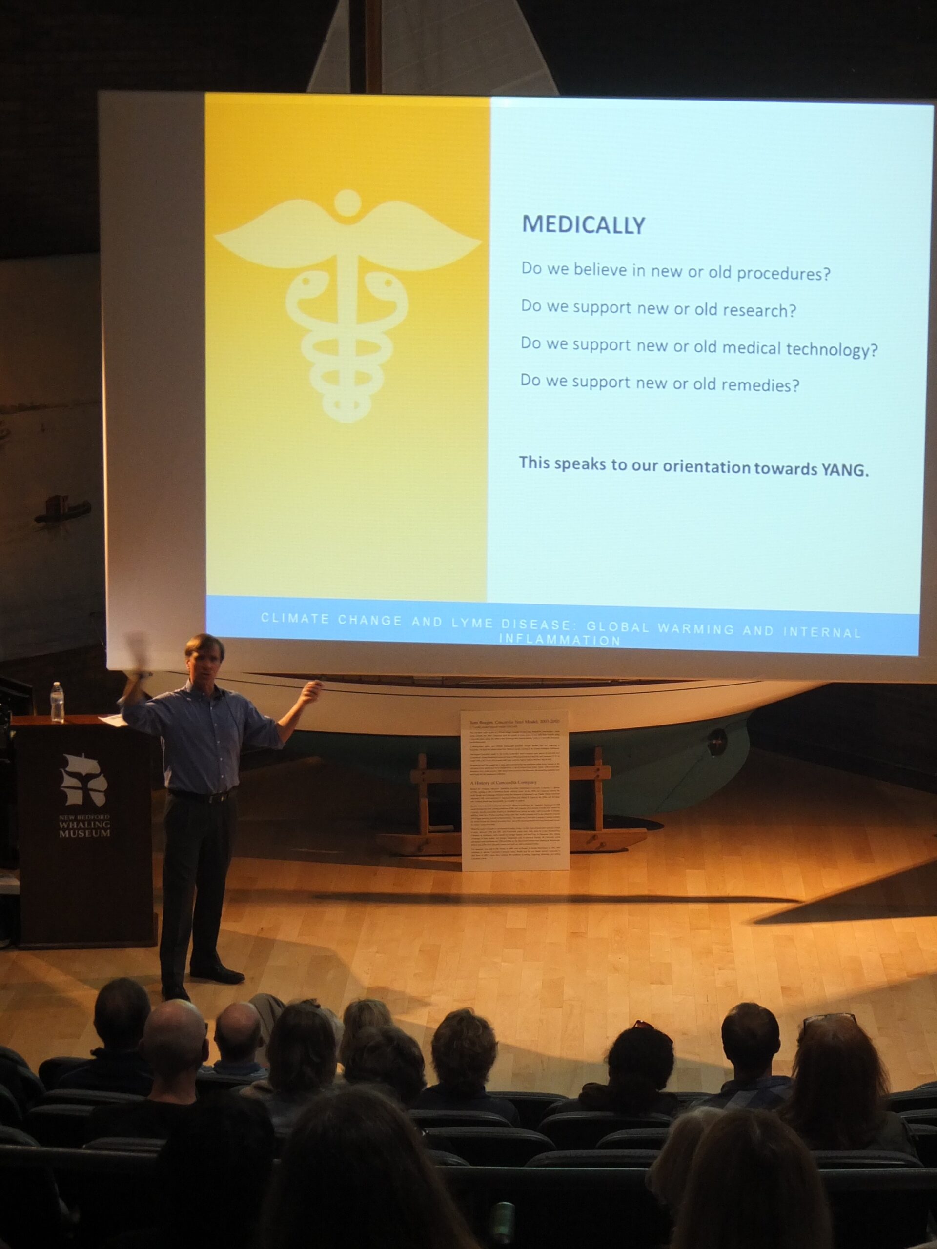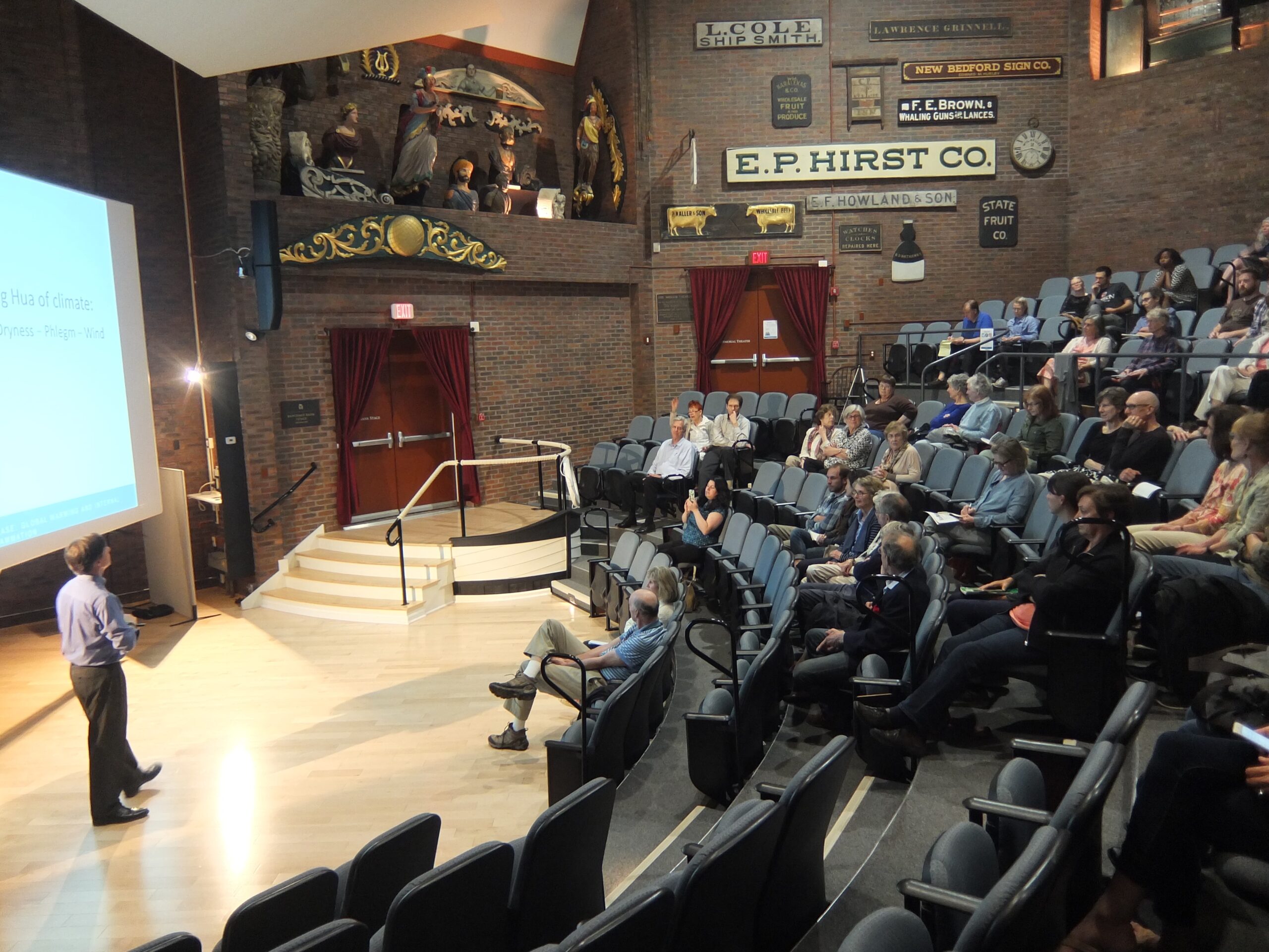 The series kicked off with an evening lecture on Thursday, June 1 at the New Bedford Whaling Museum. The event was well attended, particularly by many people who later indicated that they had never been to a Connector Series event before. They certainly chose the right event as an introduction to our thought-provoking programming. Brendan gave an informative and enlightening presentation centered on the Chinese medicine philosophy of Yin (water/cold/cool) and Yang (fire/hot/heat) and how the imbalance of our environment (both global and local) mirrors a similar overheating within us and within our culture. The audience participated eagerly in the Q&A portion of the lecture and many purchased copies of his book, which was available for signing at a post-event meet-and-greet.