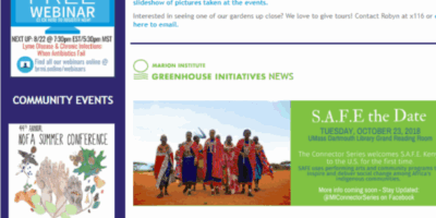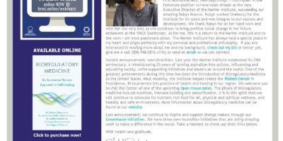 New developments at the Marion Institute, Greenhouse Initiatives update, Bioregulatory Medicine Book, Free webinars, Local Events, and more.