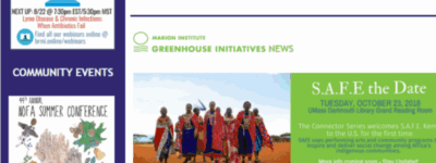 New developments at the Marion Institute, Greenhouse Initiatives update, Bioregulatory Medicine Book, Free webinars, Local Events, and more.