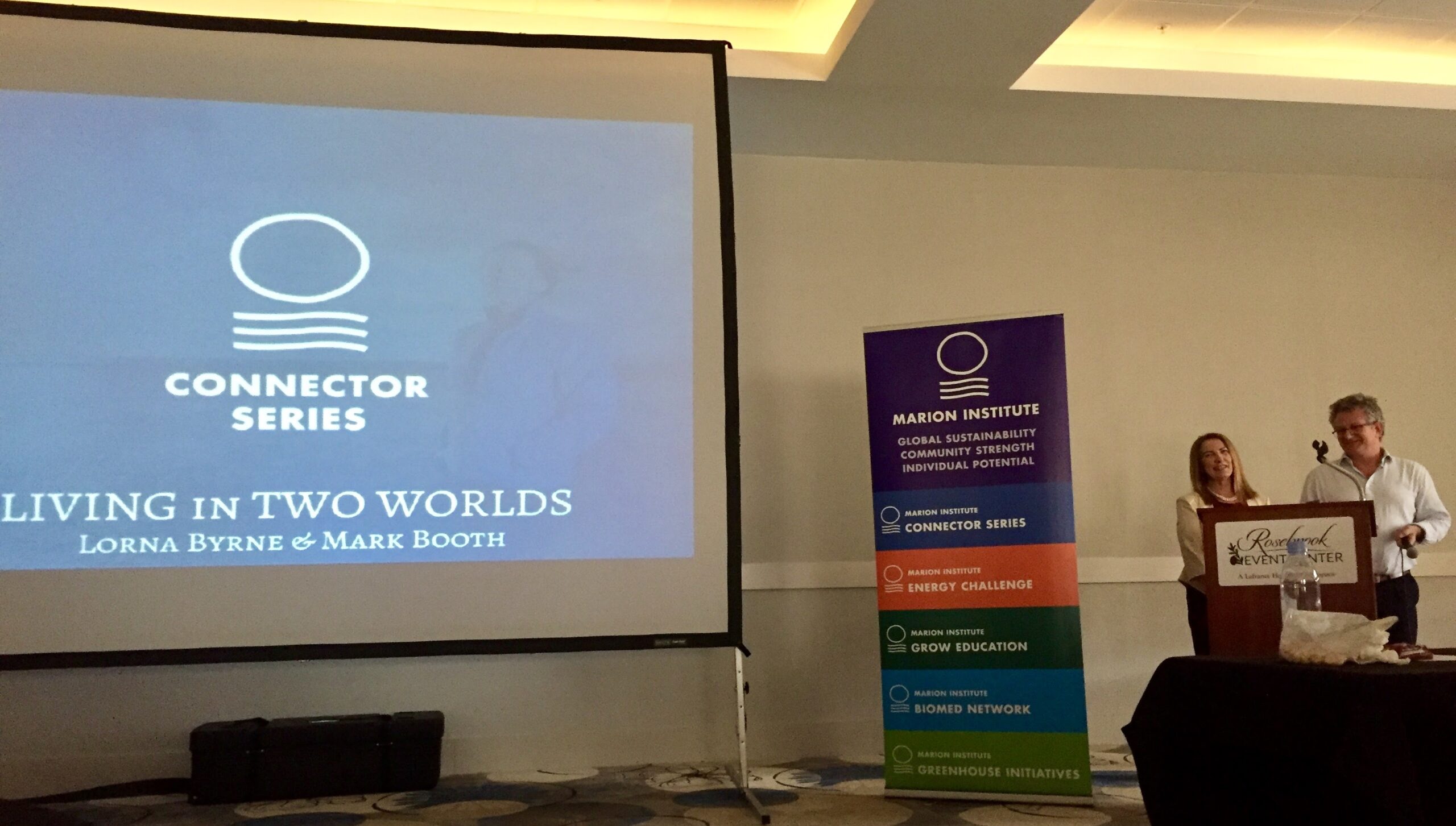 Living in Two Worlds Photo Gallery Living in Two Worlds was held on March 25, 2017 at the TownPlace Suites Wareham Marriott. Lorna Byrne and Mark Booth enlightened attendees with a mystical glimpse into the spiritual realm. Please enjoy these photos from the event. Connector SeriesConnector Series HistoryConnector Series Archive CONTACT: Liz Wiley Executive Director liz@marioninstitute.org 508.748.0816 x116 FacebookYoutube Share This Twitter Facebook Pinterest LinkedIn Related Posts Growing Knowledge, Food, and Community: ORR District PD Day with Grow Education Marion Institute Program Wishlist Boogie Before the Boogie – Silent Auction Grow Education Fundraiser on June 11th 2025 – Complimentary Tickets