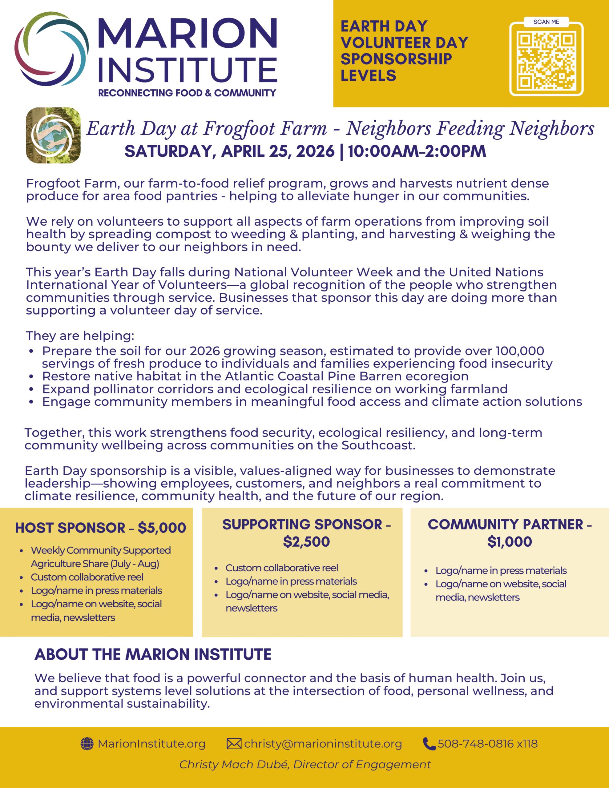 Please contact Christy Mach Dubé |cmachdube@marioninstitute.org | 508-748-0816 x118