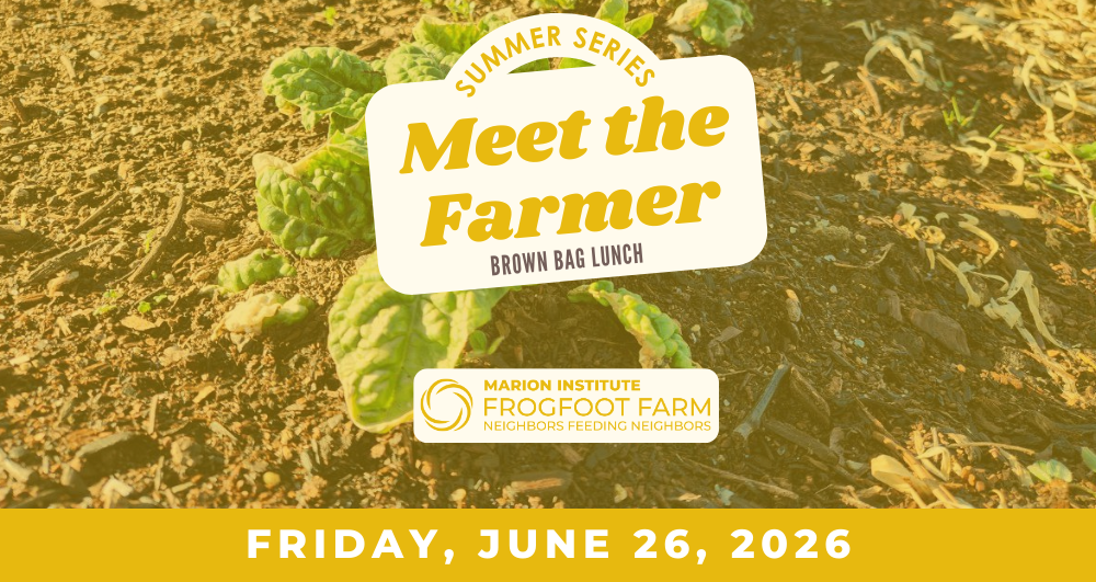 Looking for a meaningful, hands-on way to connect with your local food system? Pack a lunch and join us for our “Meet the Farmer Brown Bag Lunch” series – a monthly brown bag gathering designed to give you an inside look at Frogfoot Farm, a Marion Institute initiative turning farmland into fresh food for neighbors in need.