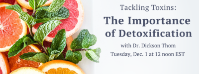 January will be here in a blink, and with it, the season of fresh intentions and habits for healthy lifestyles. It’s a great time to start thinking about what’s on your list. Join us on December 1 for a presentation and discussion on detoxification, featuring Dr. Dick Thom, renowned naturopathic practitioner.