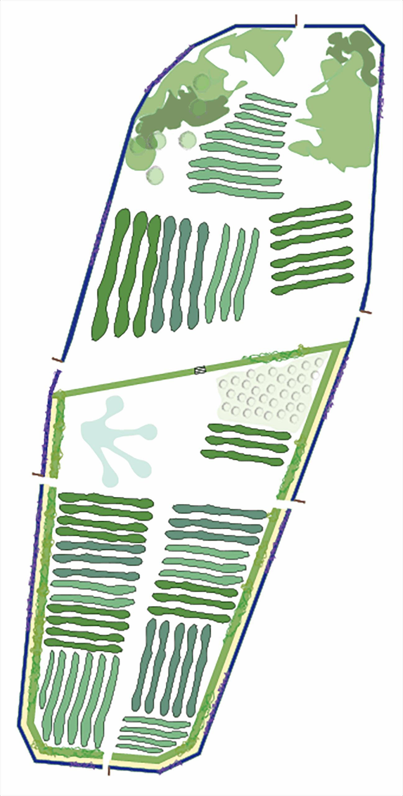 Native hedgerows, wildlife structures